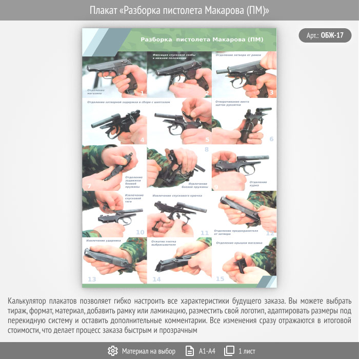 Плакат «Разборка пистолета Макарова (ПМ)» (ОБЖ-17, 1 лист) в Ижевске купить