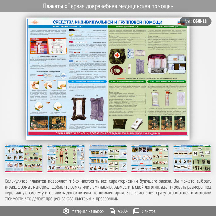 Плакаты «Первая доврачебная медицинская помощь» (ОБЖ-18, 6 листа) в Ижевске купить