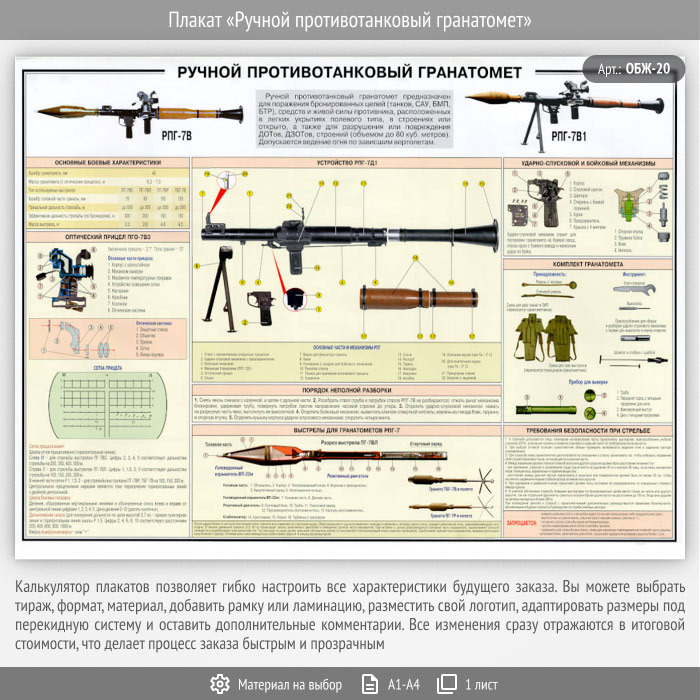 Плакат «Ручной противотанковый гранатомет» (ОБЖ-20, 1 лист) в Ижевске купить