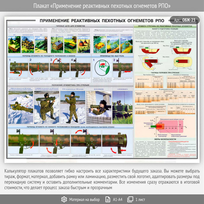 Плакат «Применение реактивных пехотных огнеметов РПО» (ОБЖ-23, 1 лист) в Ижевске купить