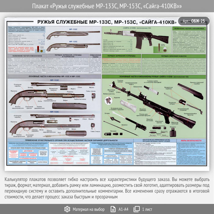 Плакат «Ружья служебные МР-133С, МР-153С, «Сайга-410КВ»» (ОБЖ-25, 1 лист) в Ижевске купить