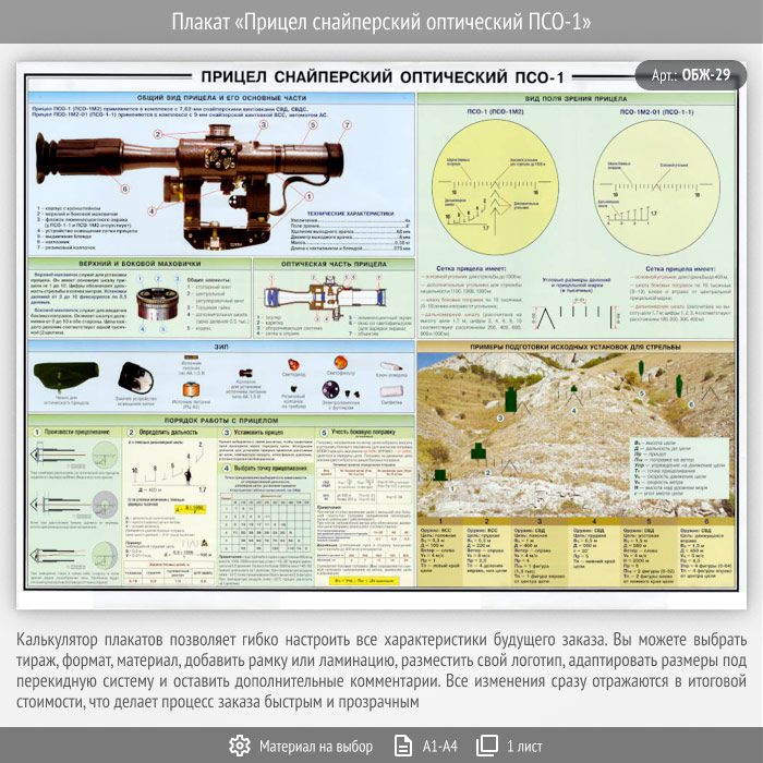 Плакат «Прицел снайперский оптический ПСО-1» (ОБЖ-29, 1 лист) в Ижевске купить