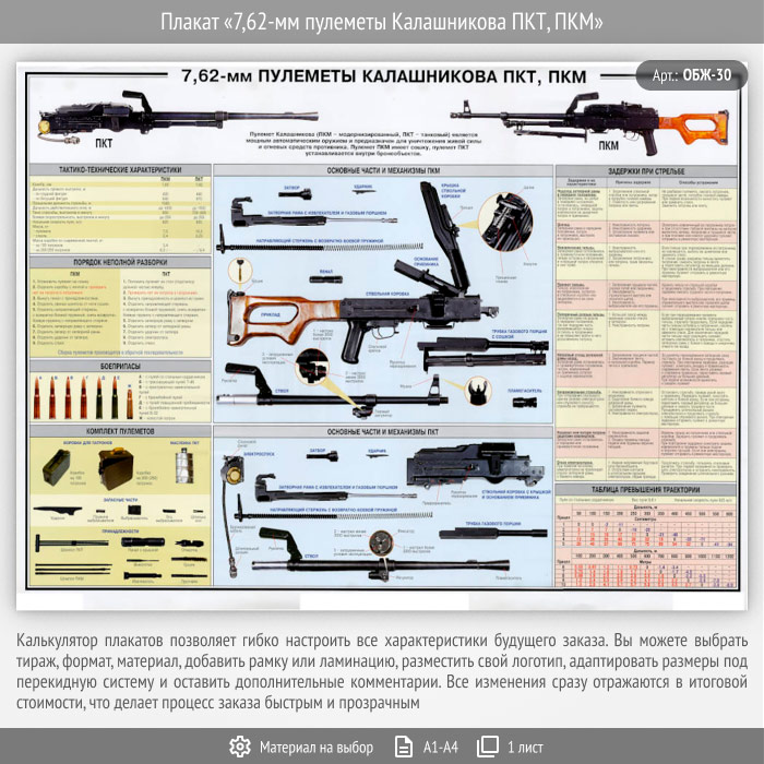 Плакат «7,62-мм пулеметы Калашникова ПКТ, ПКМ» (ОБЖ-30, 1 лист) в Ижевске купить