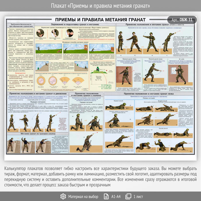 Плакат «Приемы и правила метания гранат» (ОБЖ-31, 1 лист) в Ижевске купить