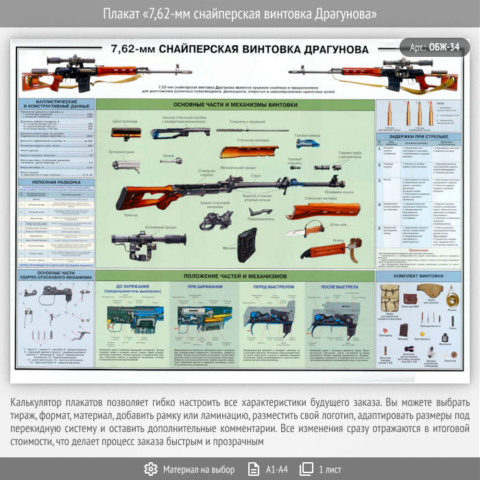 Плакат «7,62-мм снайперская винтовка Драгунова» (ОБЖ-34, 1 лист) в Ижевске купить