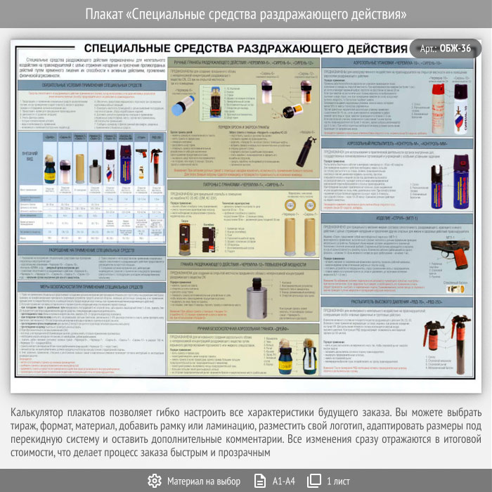 Плакат «Специальные средства раздражающего действия» (ОБЖ-36, 1 лист) в Ижевске купить