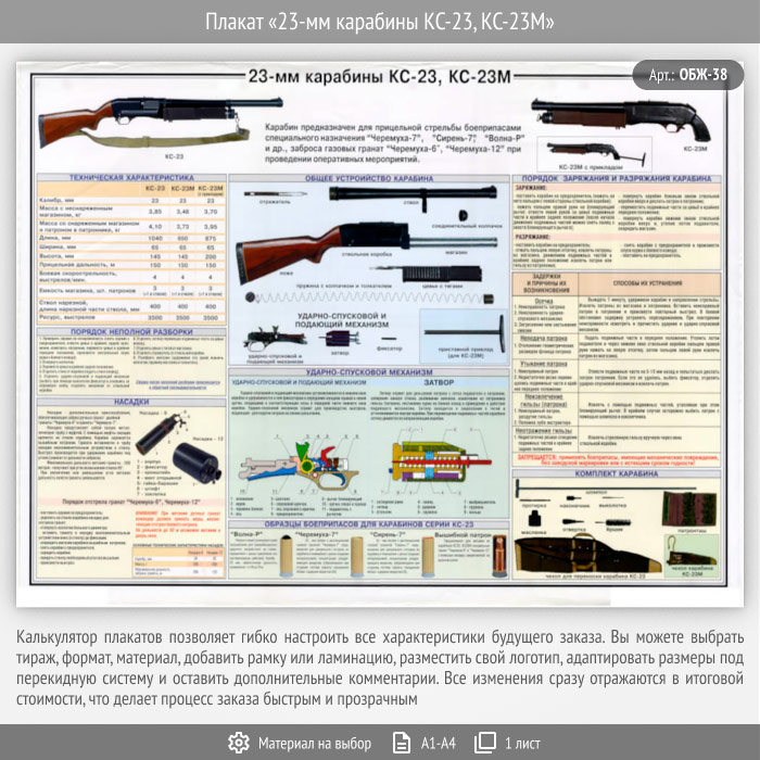 Плакат «23-мм карабины КС-23, КС-23М» (ОБЖ-38, 1 лист) в Ижевске купить