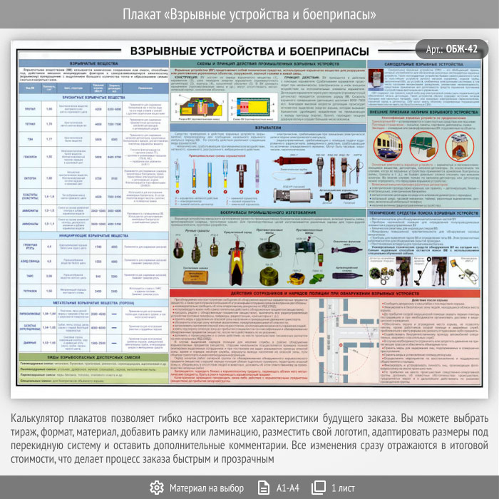 Плакат «Взрывные устройства и боеприпасы» (ОБЖ-42, 1 лист) в Ижевске купить