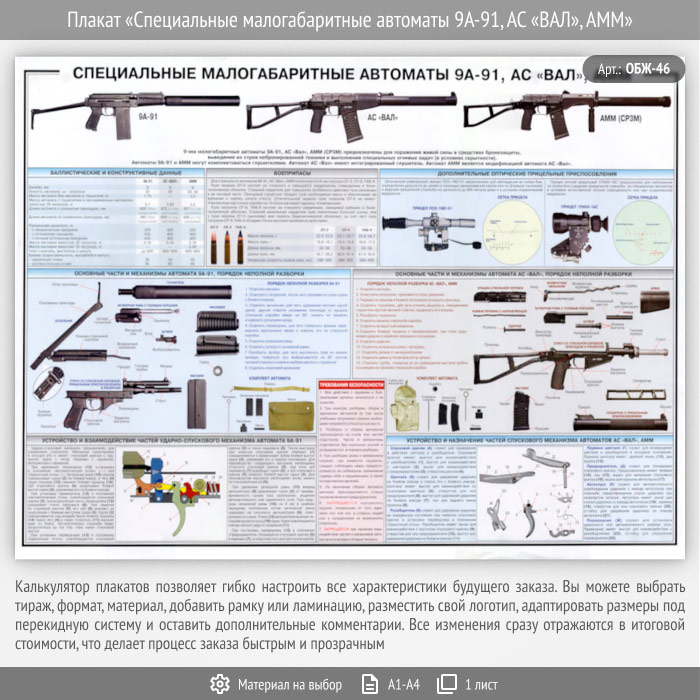 Плакат «Специальные малогабаритные автоматы 9А-91, АС «ВАЛ», АММ» (ОБЖ-46, 1 лист) в Ижевске купить