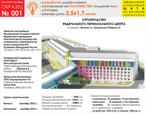 Паспорт стройки, образец № 1 (пластик 4 мм, 2500х1700 cм) в Ижевске купить