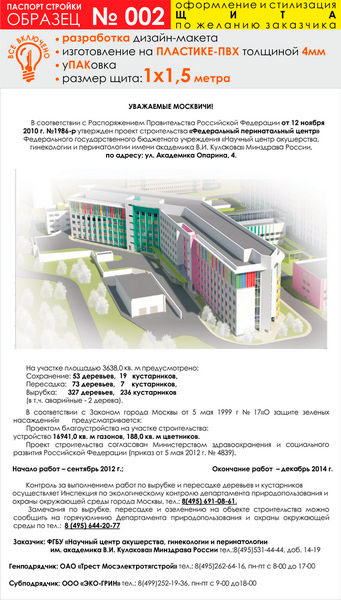 Паспорт стройки, образец № 2 (пластик 4 мм, 1000х1500 cм) в Ижевске купить