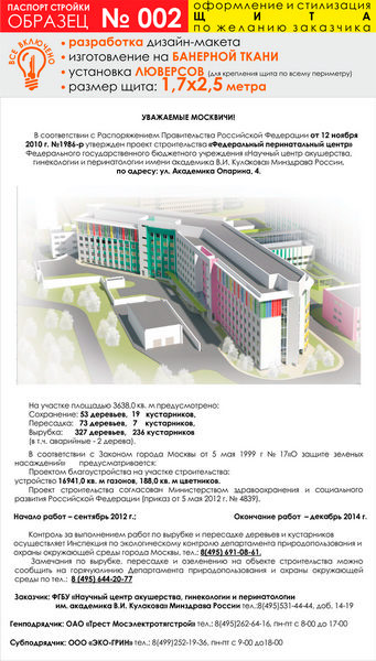Паспорт стройки, образец № 2 (баннерная ткань, 1700х2500 см) в Ижевске купить