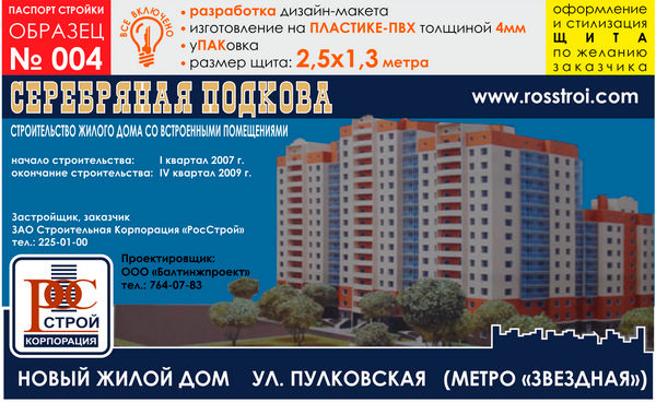 Паспорт стройки, образец № 4 (пластик 4 мм, 2500х1300 cм) в Ижевске купить