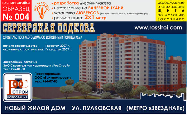 Паспорт стройки, образец № 4 (баннерная ткань, 2000х1000 cм) в Ижевске купить