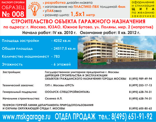 Паспорт стройки, образец № 8 (пластик 4 мм, 1500х1000 cм) в Ижевске купить