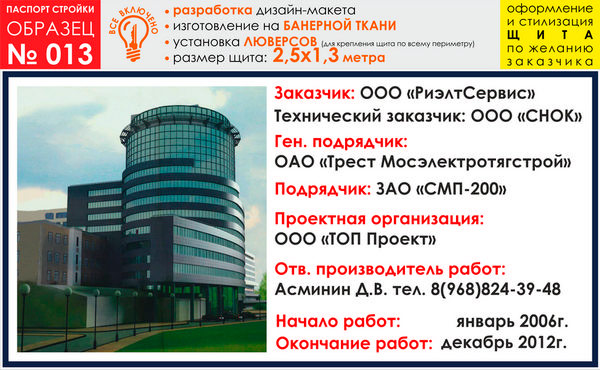 Паспорт стройки, образец № 13 (баннерная ткань, 2500х1300 cм) в Ижевске купить