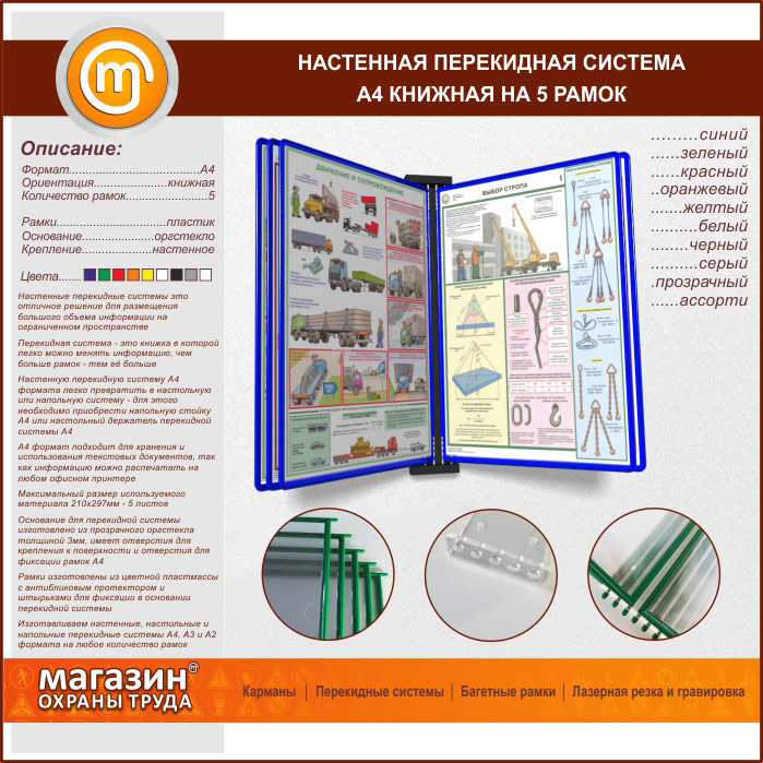 Настенная перекидная система А4 на 5 рамок книжная в Ижевске купить