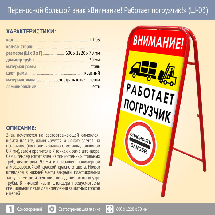 Переносной большой знак «Внимание! Работает погрузчик!» (Ш-03, односторонний, светоотражающая пленка) в Ижевске купить