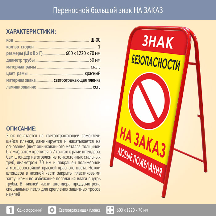 Переносной большой знак НА ЗАКАЗ (односторонний, светоотражающая пленка) в Ижевске купить