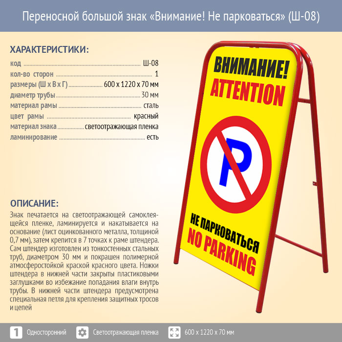 Переносной большой знак «Внимание! Не парковаться» (Ш-08, односторонний, светоотражающая пленка) в Ижевске купить