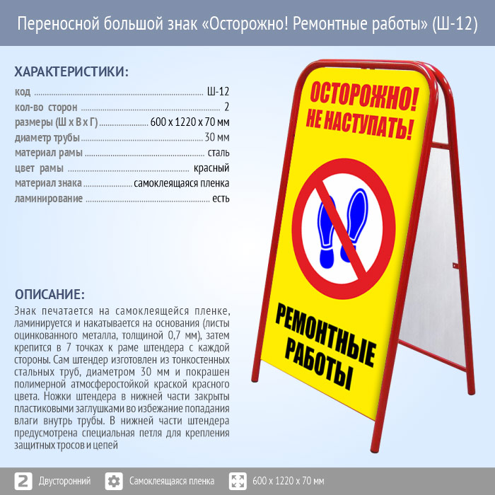 Переносной большой знак «Осторожно! Ремонтные работы» (Ш-12, двусторонний, самоклеящаяся пленка) в Ижевске купить