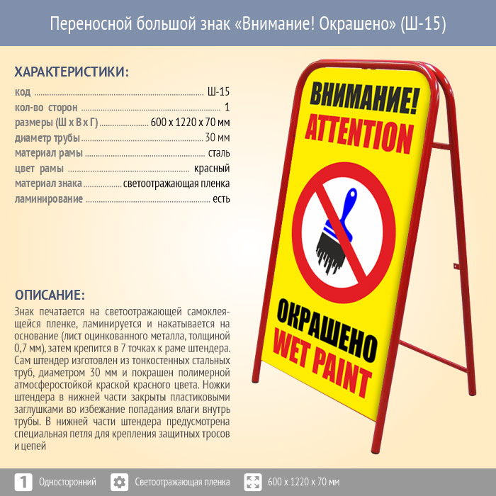 Переносной большой знак «Внимание! Окрашено» (Ш-15, односторонний, светоотражающая пленка) в Ижевске купить