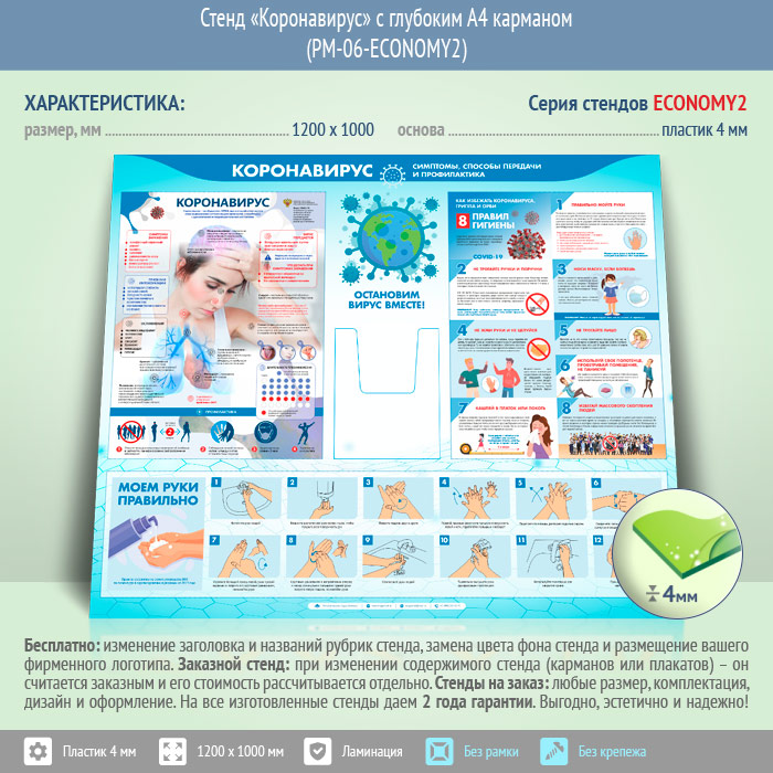 Стенд «Коронавирус» с глубоким А4 карманом (PM-06-ECONOMY2) в Ижевске купить