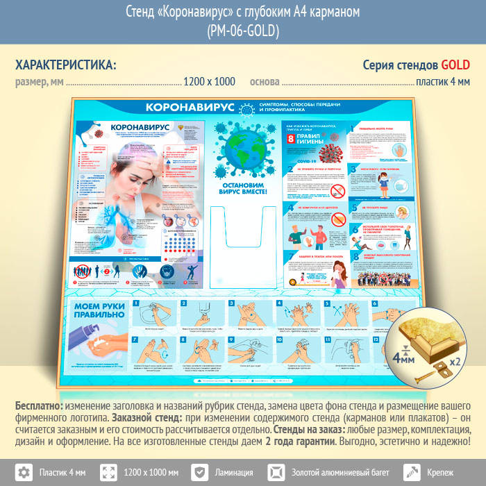 Стенд «Коронавирус» с глубоким А4 карманом (PM-06-GOLD) в Ижевске купить