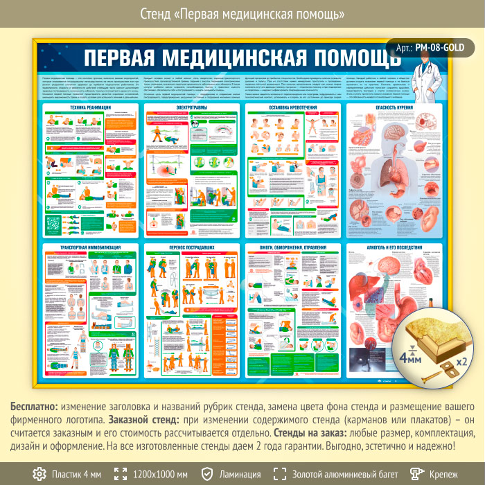 Стенд «Первая медицинская помощь» (PM-08-GOLD) в Ижевске купить