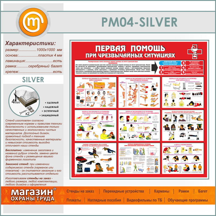 Стенд «Первая помощь при чрезвычайных ситуациях» (PM-04-SILVER) в Ижевске купить