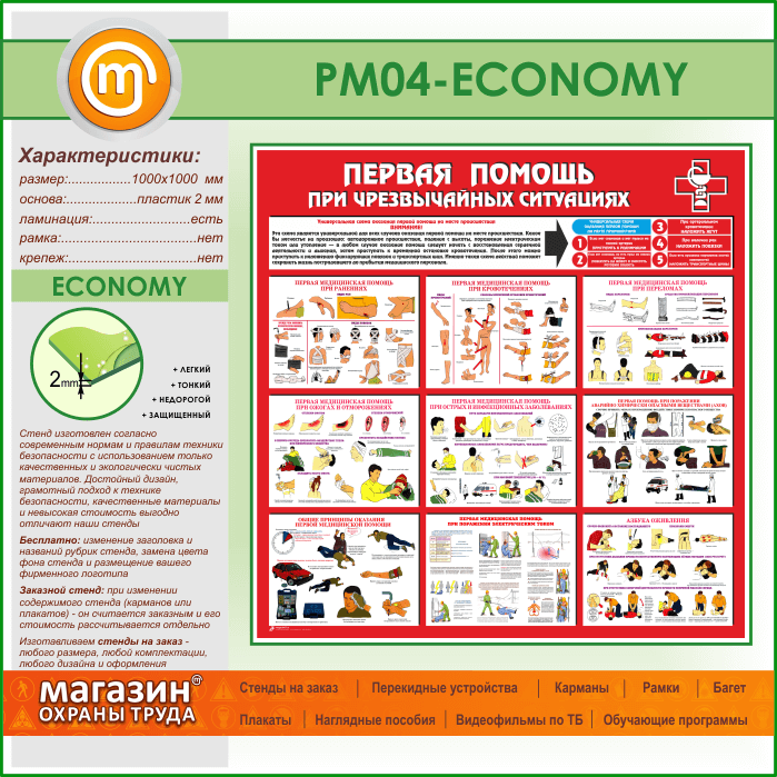Стенд «Первая помощь при чрезвычайных ситуациях» (PM-04-ECONOMY) в Ижевске купить