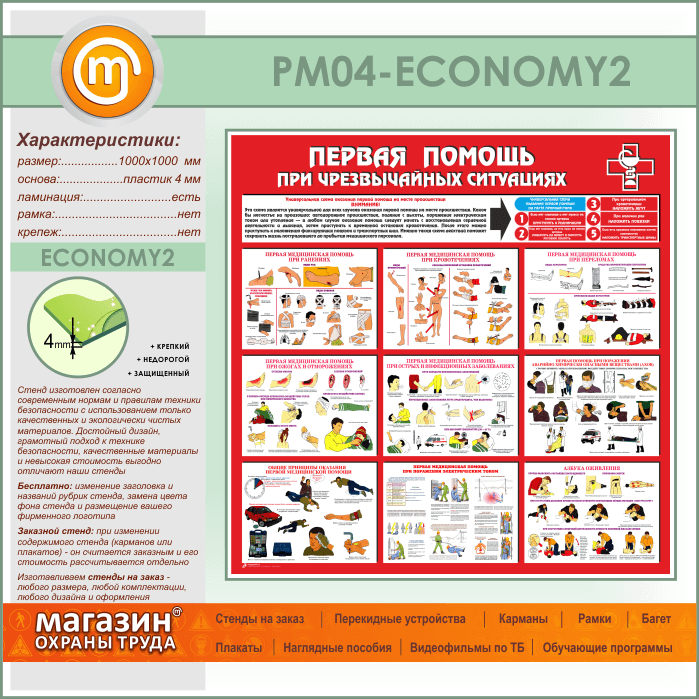 Стенд «Первая помощь при чрезвычайных ситуациях» (PM-04-ECONOMY2) в Ижевске купить