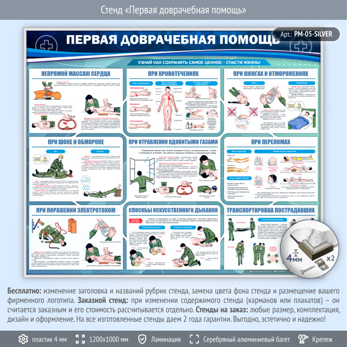 Стенд «Первая доврачебная помощь» (PM-05-SILVER) в Ижевске купить