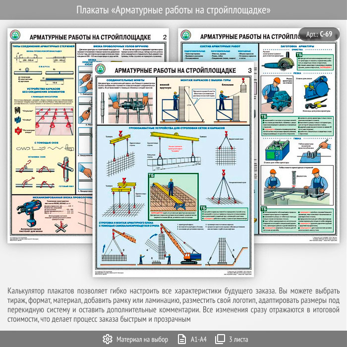 Комплект плакатов «Арматурные работы на стройплощадке» из 3 листов – достойное качество и полезная информация по приемлемой цене