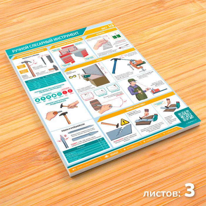 Комплект плакатов «Ручной слесарный инструмент» из 3 листов яркое и привлекающее к себе внимание напоминание о необходимости соблюдения правил безопасности