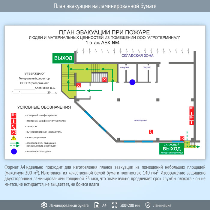 - Горячая ламинация изображения значительно увеличивает срок службы, защищая план эвакуации от воздействия факторов окружающей среды