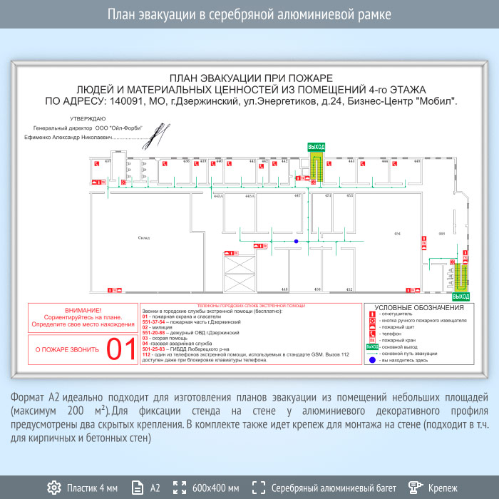 План эвакуации в серебряной алюминиевой рамке (А2 формат) в Ижевске купить