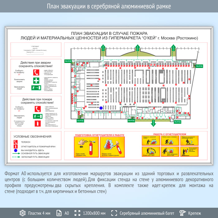 План эвакуации в серебряной алюминиевой рамке (А0 формат) в Ижевске купить