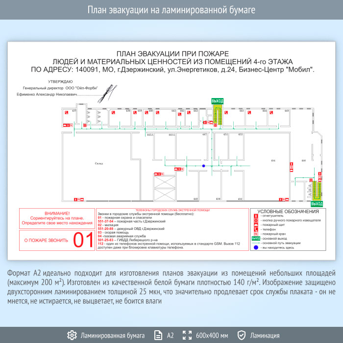 План эвакуации на ламинированной бумаге (А2 формат) в Ижевске купить