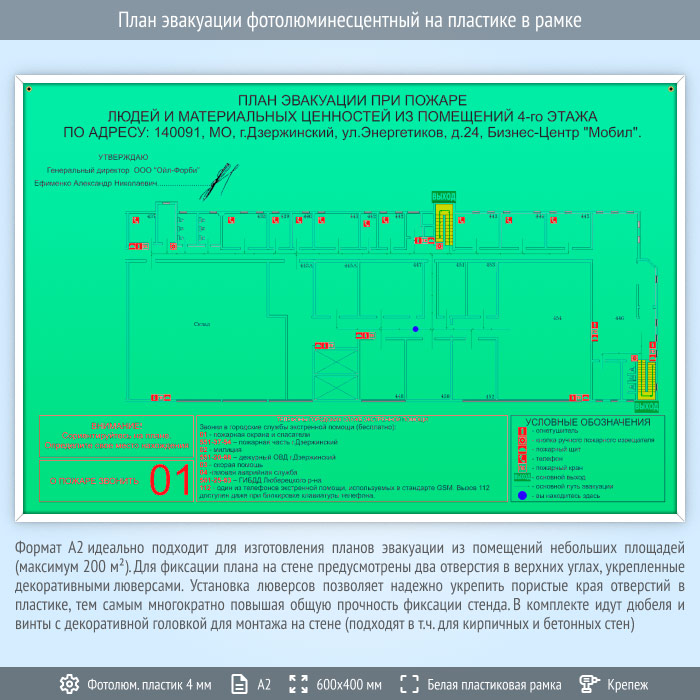План эвакуации фотолюминесцентный на пластике в рамке (А2 формат) в Ижевске купить