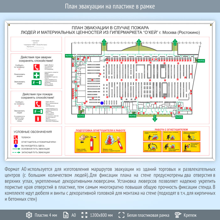 План эвакуации на пластике в рамке (А0 формат) в Ижевске купить