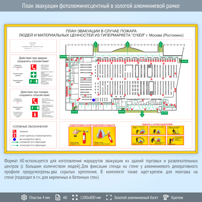 План эвакуации в золотой алюминиевой рамке (А0 формат) в Ижевске купить