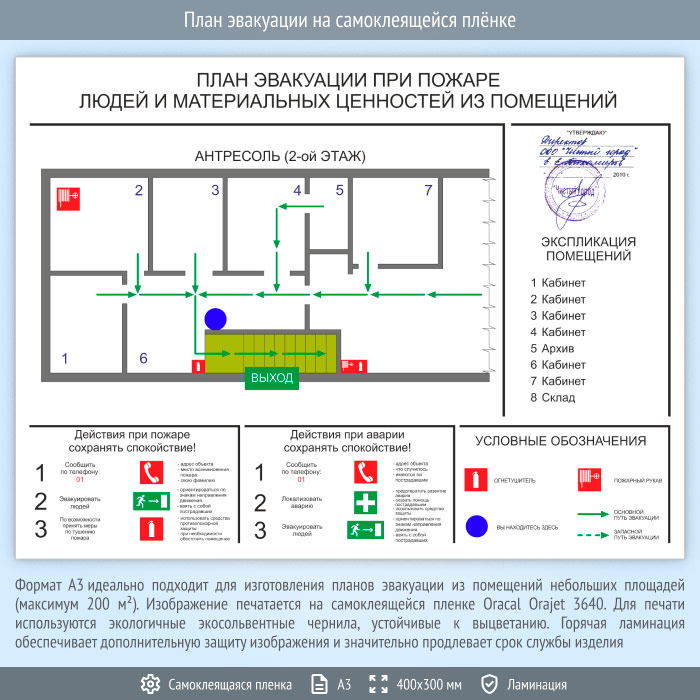 План эвакуации на самоклеящейся плёнке (А3 формат) в Ижевске купить