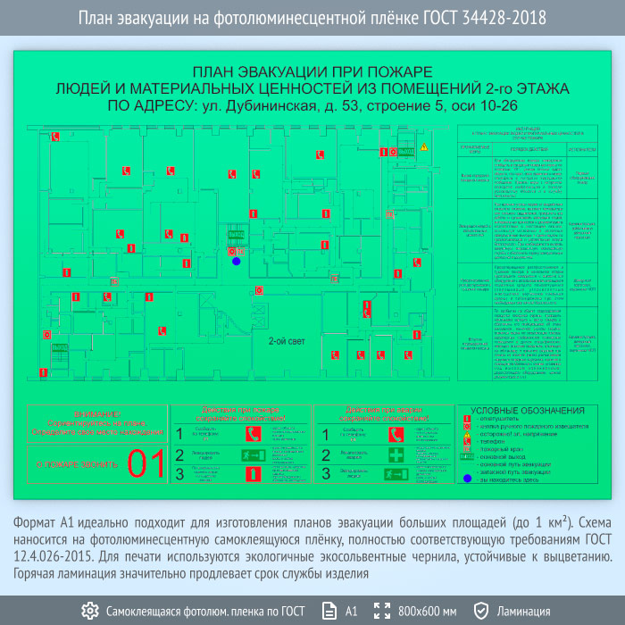 План эвакуации на фотолюминесцентной плёнке ГОСТ 34428-2018 (А1 формат) в Ижевске купить