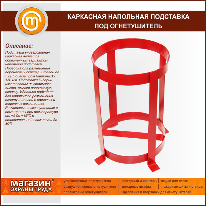 Главная Пожарная безопасность Подставки, кронштейны и шкафы для огнетушителей Каркасная напольная подставка под огнетушитель |