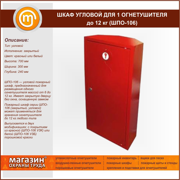 Шкаф пожарный ШПО-106 угловой для 1 огнетушителя до 12 кг в Ижевске купить