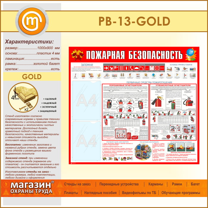 Стенд «Пожарная безопасность» с 2 карманами (PB-13-GOLD) в Ижевске купить