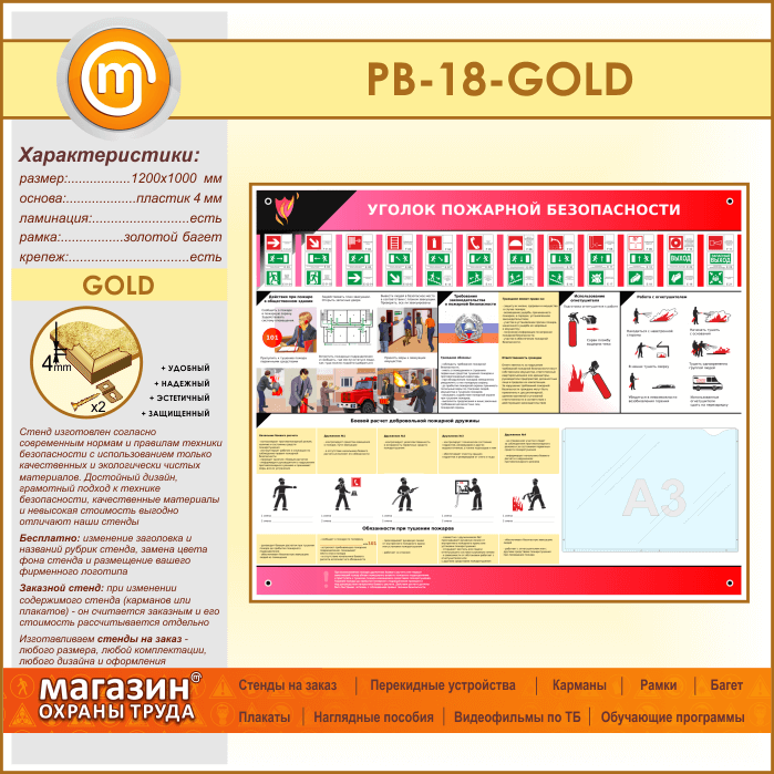 Стенд «Уголок пожарной безопасности» с карманом А3 формата (PB-18-GOLD) в Ижевске купить