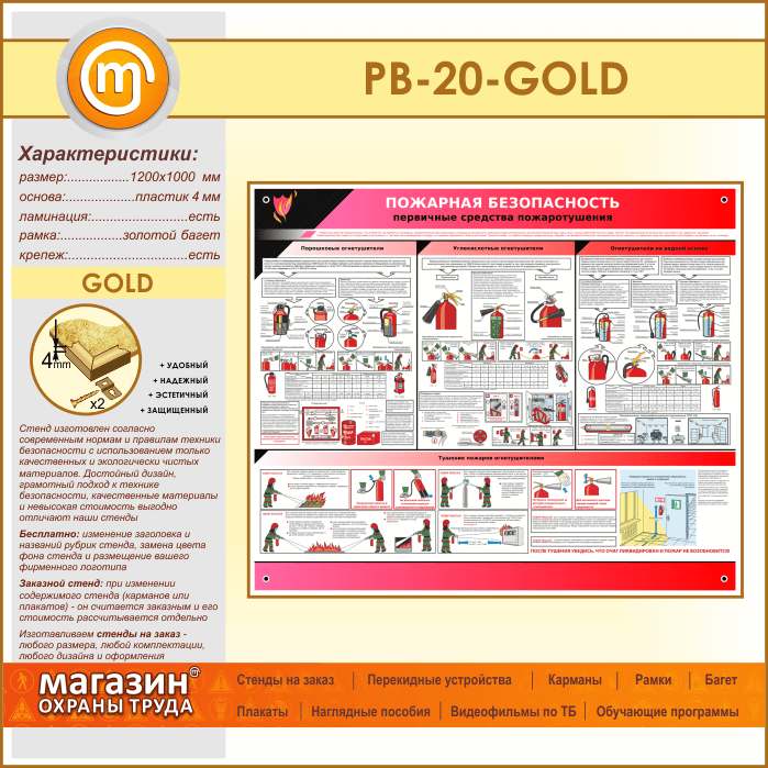 Стенд «Пожарная безопасность. Первичные средства пожаротушения» (PB-20-GOLD) в Ижевске купить