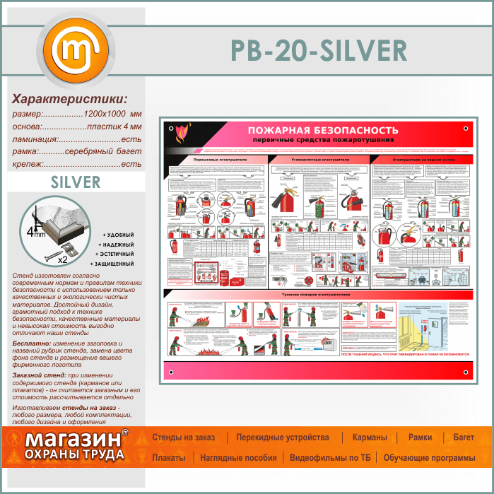 Стенд «Пожарная безопасность. Первичные средства пожаротушения» (PB-20-SILVER) в Ижевске купить